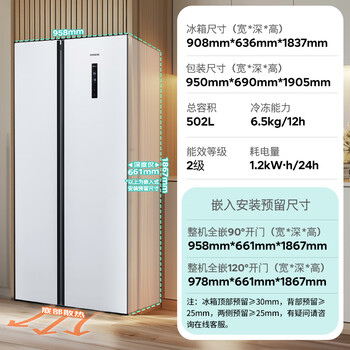 西门子(SIEMENS)502L对开门冰箱 变频 风冷无霜 大容量 长效保鲜 超薄嵌入式 白 KA50NE20TI