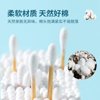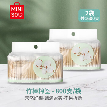 名创优品(MINISO)棉签便携装棉棒化妆掏耳棉花棒棉花签圆头+尖头双头设计200支*8袋