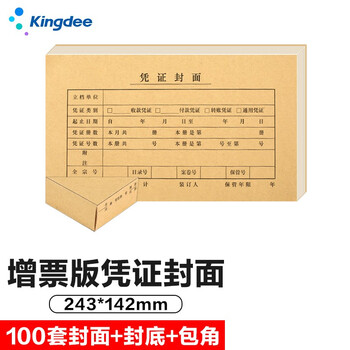 金蝶(kingdee)发票版记账凭证封面会计凭证封皮100套(封面 封底 包角)243*142mmFM121B-100