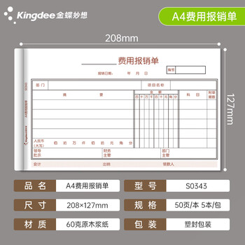 金蝶(kingdee)费用报销单 财务手写报销单据 财会用品单据208*127mm 50张/本 5本/包