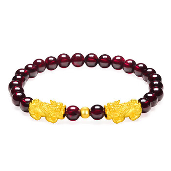蒂蔻(Tico)足金双貔貅黄金转运珠手链女3D硬金饰品石榴石手串生日礼物