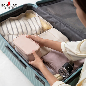 爱可乐(Echolac)超大容量拉杆箱时尚方形旅行箱TSA密码锁箱行李箱PC183K黑色26吋