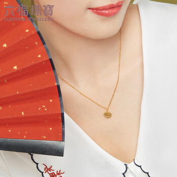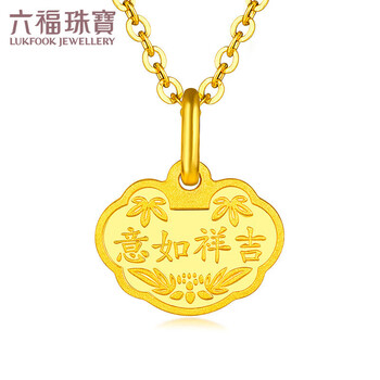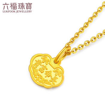 六福珠宝黄金吊坠长命富贵吉祥如意足金挂坠周岁礼不含项链 计价 约0.96克