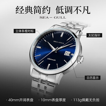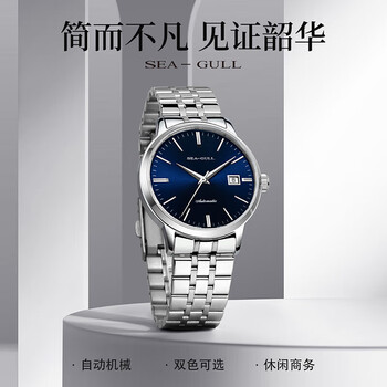海鸥(SEAGULL)手表男士自动机械表 国民日历男士手表 生日礼物男表 6165蓝盘