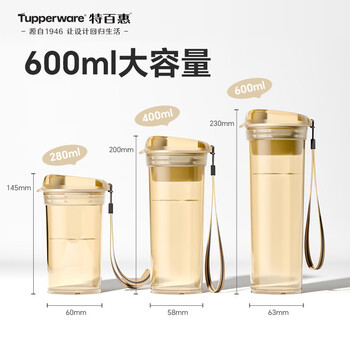 特百惠(Tupperware)晶彩MAX塑料杯600ml 男女士学生运动水杯子大容量泡茶杯 奶茶棕