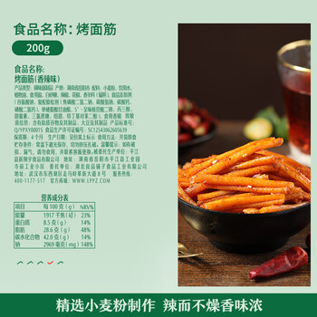 良品铺子 烤面筋香辣味辣皮辣片网红辣条小零食休闲小吃200g