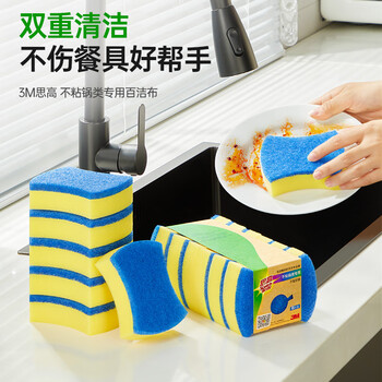 3M思高洗碗布海绵百洁布 6片装 不粘锅专用洗碗海绵不易留刮痕抹布