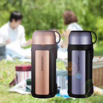 乐扣乐扣(LOCK&LOCK)保温壶304不锈钢保温保冷水壶户外露营旅行壶1.5L金色