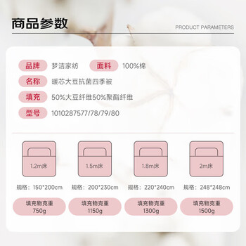 国补备案型号 暖芯大豆抗菌四季被 220*240 1300g