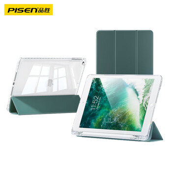 品胜 适用于ipad 5/6/Air2 9.7英寸保护壳2018款苹果平板电脑保护套 全包防摔轻薄半透明三折 暗夜绿