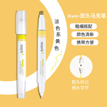 国誉(KOKUYO)进口mark+彩色荧光笔 学生用划重点标记记号笔 双头黄色 1支装PM-MT200Y