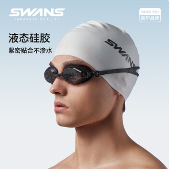 SWANS泳镜进口男女平光防水防雾高清专业装备游泳眼镜泳帽套装 黑色