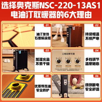 奥克斯(AUX)【石墨烯速热】取暖器/取暖器家用/取暖电器/电暖器/电暖气片烤火炉油丁电暖炉13片石墨烯电热油汀
