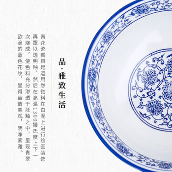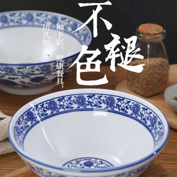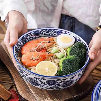 传旗 青花瓷面碗 7英寸釉下彩陶瓷汤碗拉面碗泡面碗宽口大碗餐具