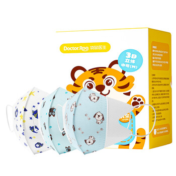 袋鼠医生3D立体儿童口罩3-6岁亲肤透气防尘粉独立包装一只一袋30只/盒