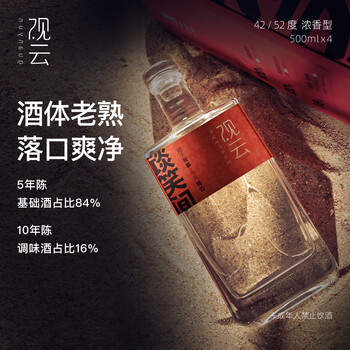 观云红标谈笑间 浓香型白酒 52度 500ml*4瓶 箱装 口粮 节日送礼