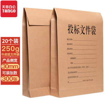 天章 (TANGO)A4投标文件袋牛皮纸档案袋3cm侧宽250g加厚20只装企业项目标书密封袋工程报价档案投标专用袋9044