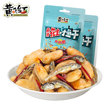 黄飞红(HUANGFEIHONG)麻辣花生小鱼干花生米98g*2袋 休闲网红零食小吃下酒菜花生仁