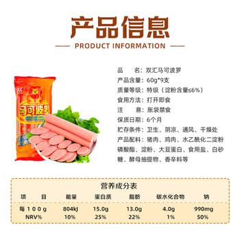 双汇 马可波罗特级火腿肠香肠 60g*9支 休闲零食 露营 出游烧烤 速食