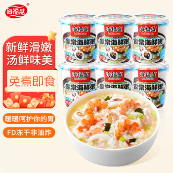 海福盛方便速食粥懒人食品即食早餐宵夜营养冻干粥家常海鲜粥38g*6杯