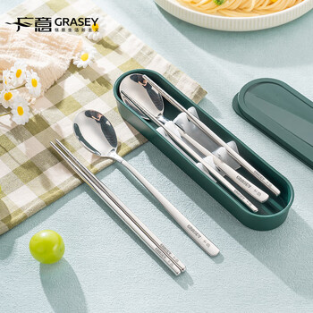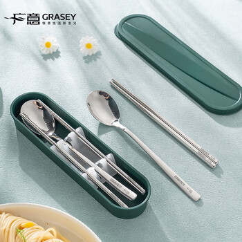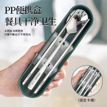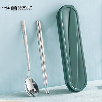 广意筷子 餐具学生316不锈钢筷子勺子套装上班族专用便携餐具GY7664