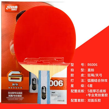 红双喜(DHS)乒乓球拍六星直拍H6006进攻型双面反胶单拍附拍套