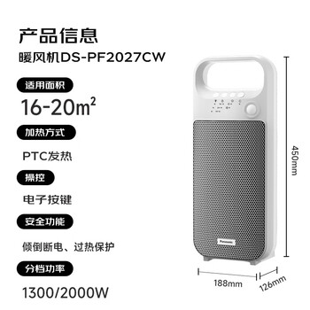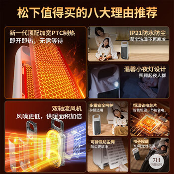 松下(Panasonic)暖风机取暖器家用办公室立式电暖器/便携电暖气浴室防水速热电暖风小型热风机小太阳DS-PF2027CW