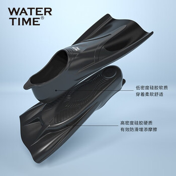 WATERTIME/水川 游泳脚蹼训练短脚蹼浮潜自由泳成人儿童专业装备黑色XXXS
