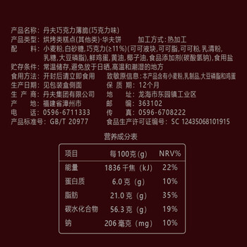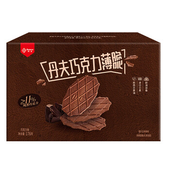 丹夫巧克力薄脆华夫饼176g共16片纯脂黑巧克力脆饼干茶健康早餐零食