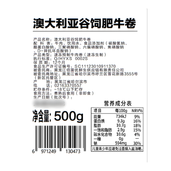 澳大利亚谷饲肥牛卷500gX1