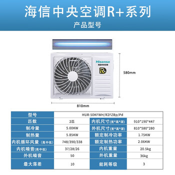 海信(Hisense)2匹变频风管机 隐藏嵌入式 房间客厅专用 R+系列 HUR-50KFWH/R2FZBp/Pd(不含安装费和辅材)