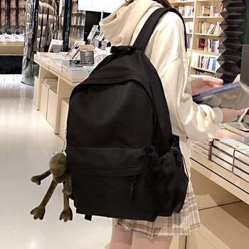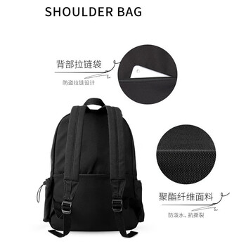 Landcase书包高中生女双肩包男初中大学生时尚简约旅行电脑背包 1212黑色