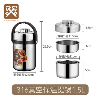 金钥匙(GOLDEN KEY)316保温提锅1.5L防溢真空不锈钢保温饭盒(升级版)GK-RS1500T-316
