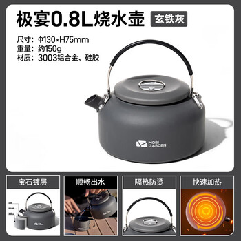牧高笛(MOBIGARDEN)烧水壶 户外露营便携中式开水壶烧水壶0.8L NX20666007 玄铁灰