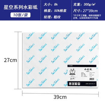 鲁本斯(PaulRubens)星空水彩纸加厚8K粗纹300g棉浆纸素描纸学生初学美术绘画纸10张/包0111029
