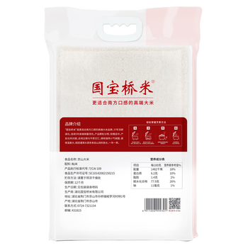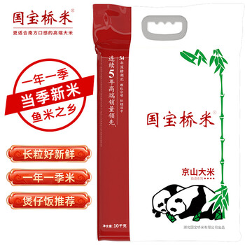 国宝桥米京山大米20斤 当季新米 煲仔饭大米南方籼米 熊猫米 长粒米