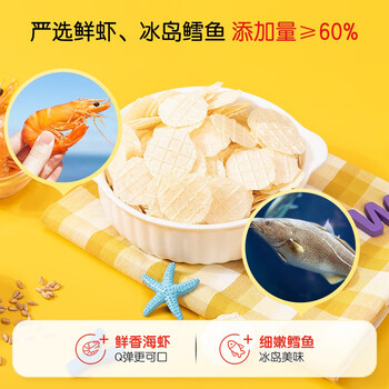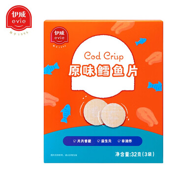 伊威(Eastwes)儿童零食鳕鱼片 圆形薄脆片饼干 不添食盐白砂糖原味虾片 32g