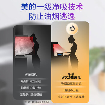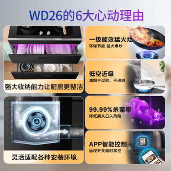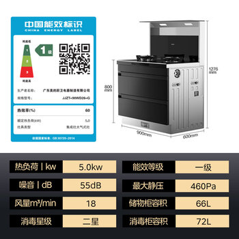 华凌 美的出品集成灶 油烟机燃气灶 二星消毒柜 储物柜 一体式 可换向风道 JJZT-90WD26-G 天然气