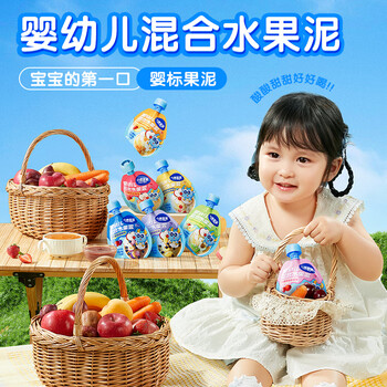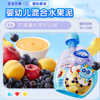 小鹿蓝蓝_婴幼儿趣味果泥苹果黄桃黑加仑 宝宝辅食营养水果泥 108g