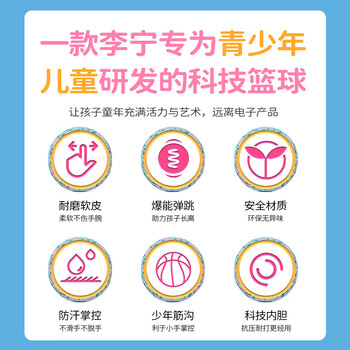 李宁(LI-NING)篮球儿童5号青少年耐磨水泥地室外比赛小学生幼儿园篮球五号655-1