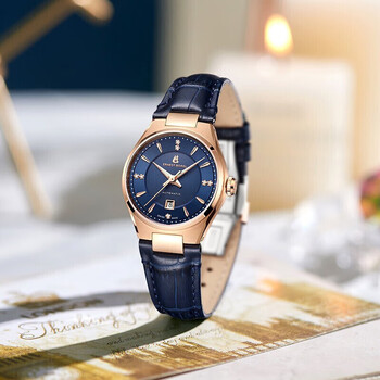 依波路(ERNEST BOREL)瑞士手表 生日新年礼物 传承系列165周年纪念款间金蓝盘机械女表