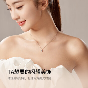 周六福18k金花烁钻石吊坠女婚嫁KGDB047688 不含链约10分生日礼物
