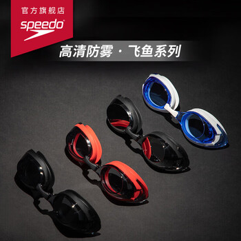 速比涛(Speedo)飞鱼系列精工高清防水防雾泳镜游泳装备男女通用 红色/黑色