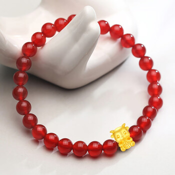蒂蔻(Tico)足金十二生肖羊黄金转运珠手链女款编织绳手串3D硬金羊本命年手链