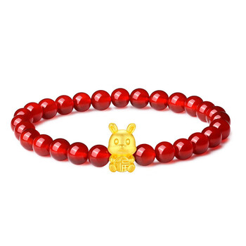 蒂蔻(Tico)足金十二生肖兔黄金转运珠手链女款红玛瑙手串5D硬金兔本命年手链