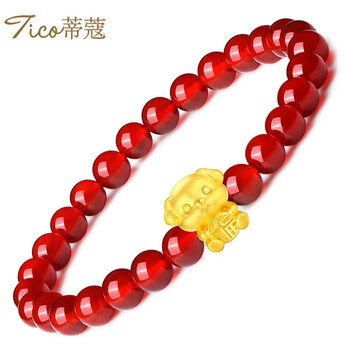 蒂蔻(Tico)足金十二生肖狗黄金转运珠手链女款红玛瑙手串5D硬金狗本命年手链