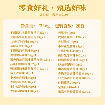 三只松鼠轰趴零食大礼包28袋2346g 辣条肉脯儿童休闲零食年货礼包送礼混发