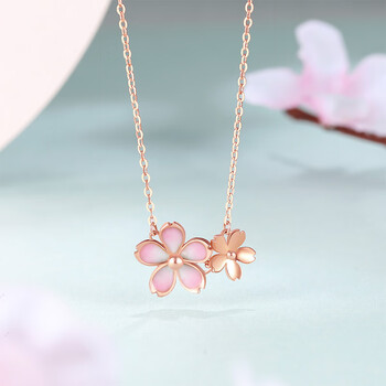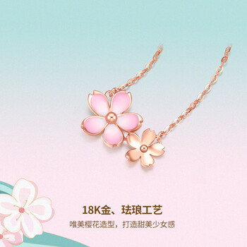周六福18K金项链女樱花醉项链生日礼物 KIHH066833 常规版 40+5cm