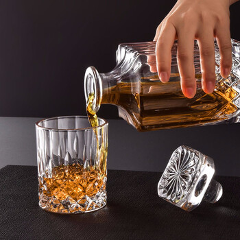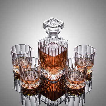 CLITON 玻璃威士忌酒杯 烈酒杯洋酒杯家用玻璃杯4只酒杯+1个酒樽套装