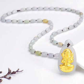 蒂蔻(Tico)八大守护神十二生肖金镶玉吊坠项链男女镶嵌和田玉圆筒生日礼物